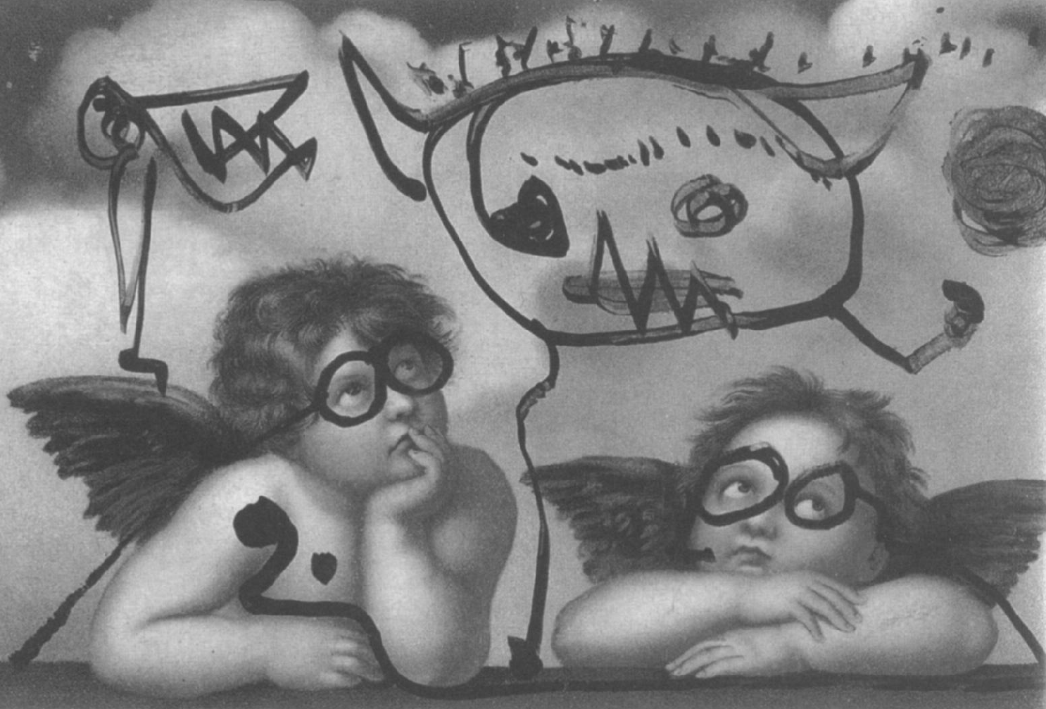 The album cover of RawMantiSch (2025) also disregards logic. Disjointed uneven patches of abstract patterns surrounding what looks like a Weimar photographic portrait for a movie poster or an avant-garde magazine. Using a glitch-art technique, which itself reminds Dada collages and magazine covers for mid-twentieth century publications, the black-and-white photographic portrait, whether AI generated or found, is defaced in a manner that reminds the CoBrA artist Asger Jorn’s artistic vandalisms. [i] The cover of RawMantiSch (2025), then, also plays with our memories of the black-and-white era and hand-made typography.
